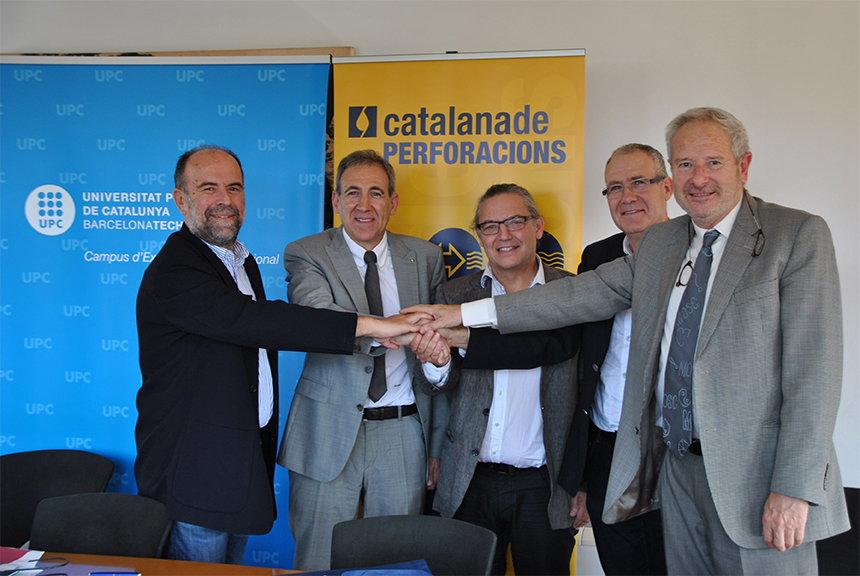 El Rector Magnífico de la Universidad Politécnica de Catalunya, Sr. Enric Fossas Clotet, juntamente con el Vicerrector de Política de Investigación, Sr. Fernando Orejas, el responsable del departamento de Ingeniería Minera y Recursos Naturales de la UPC, Sr. Josep Font, así como el Sr. Domènec Pintó y el Sr. Esteve Pintó en calidad de administradores de las empresas del Grupo Aquacenter®, dejaron patente su interés para la unión y coordinación de las dos instituciones para establecer caminos de actuación comunes dentro el marco de colaboración universidad-empresa.