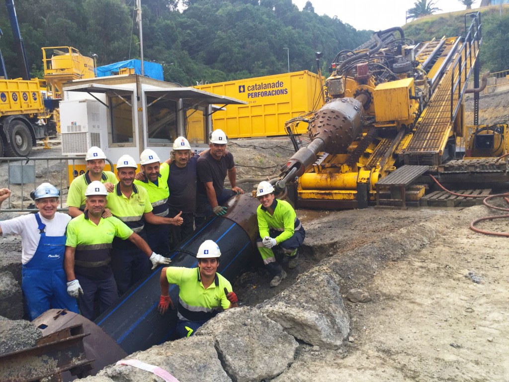 Los trabajos del emisario submarino de la EDAR de Lamiaren-Aramburu finalizaron el pasado mes de julio de 2015 con la instalación de una tubería de 919m de longitud que permitirá verter las aguas depuradas a 20 metros de profundidad dentro del mar. Los trabajos se iniciaron con 5 meses de anterioridad en la localidad de Bermeo con una detallada investigación geofísica compuesta por dos perfiles de tomografía eléctrica, un estudio batimétrico y topográfico, estudio de georadar y varios sondeos geotécnicos que confirmaban la existencia de un subsuelo poco uniforme. Concretamente, la principal amenaza de la perforación recaía en la intrusión de un estrato volcánico inestable de ofitas muy alteradas, que incidía directamente en el trazado de la perforación y que junto con la complicada orografía y emplazamiento de los equipos suponían los principales desafíos técnicos de la obra.