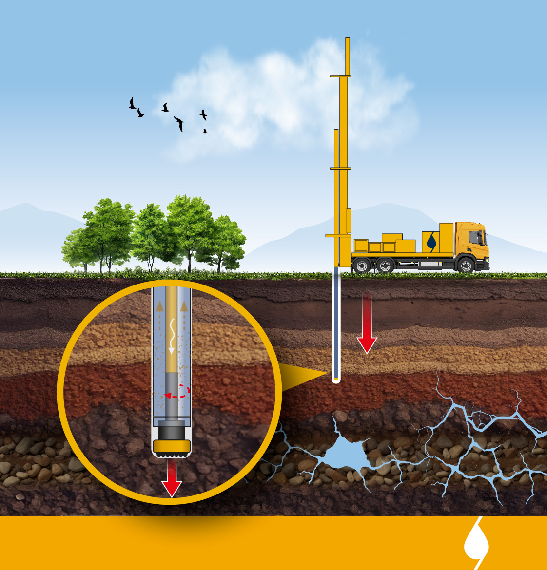 És una tècnica pensada per a perforacions profundes amb terrenys poc consolidats com ara argiles, sorres argiloses, margues i graves, entre d’altres.